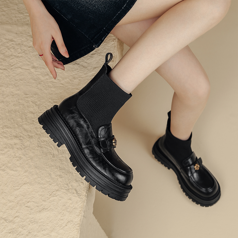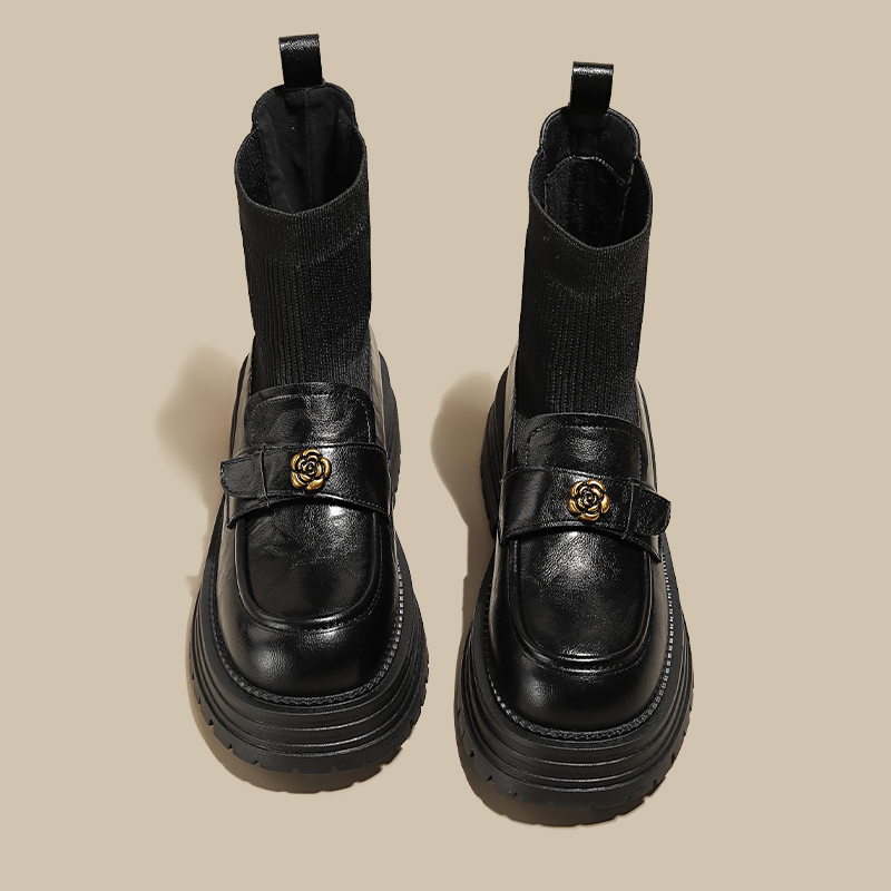 山茶花短靴子女款2025新款秋冬黑色英伦风增高瘦瘦靴百搭弹力袜靴