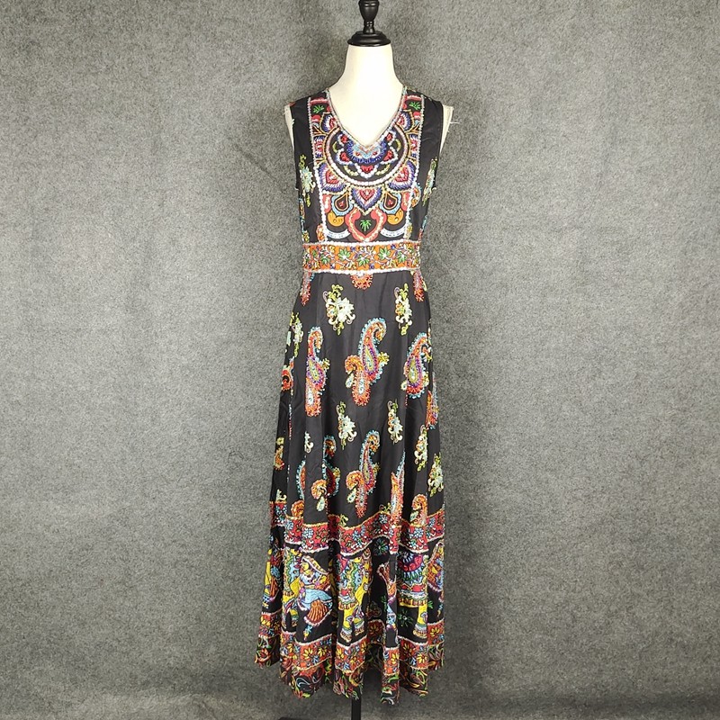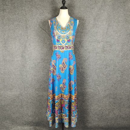 清仓春装新款女连衣裙海边渡假沙滩裙印度大象裙复古初恋裙