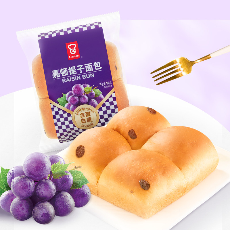嘉顿提子包4个装新鲜牛奶面包蛋糕全麦营养早餐下午茶零食180g