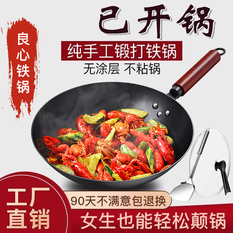 章丘炒菜锅传统铁锅官方旗舰老式炒锅家用不粘锅无涂层燃气灶适用