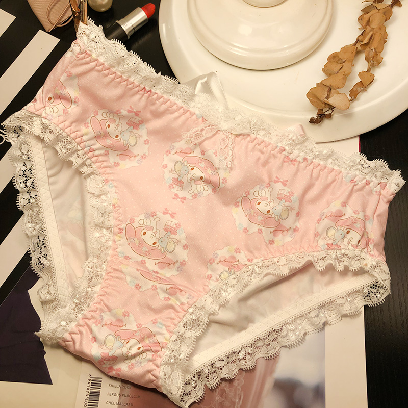 3送1 日系甜美少女蕾丝边后蝴蝶结可爱内裤 纯棉档中腰三角裤学生