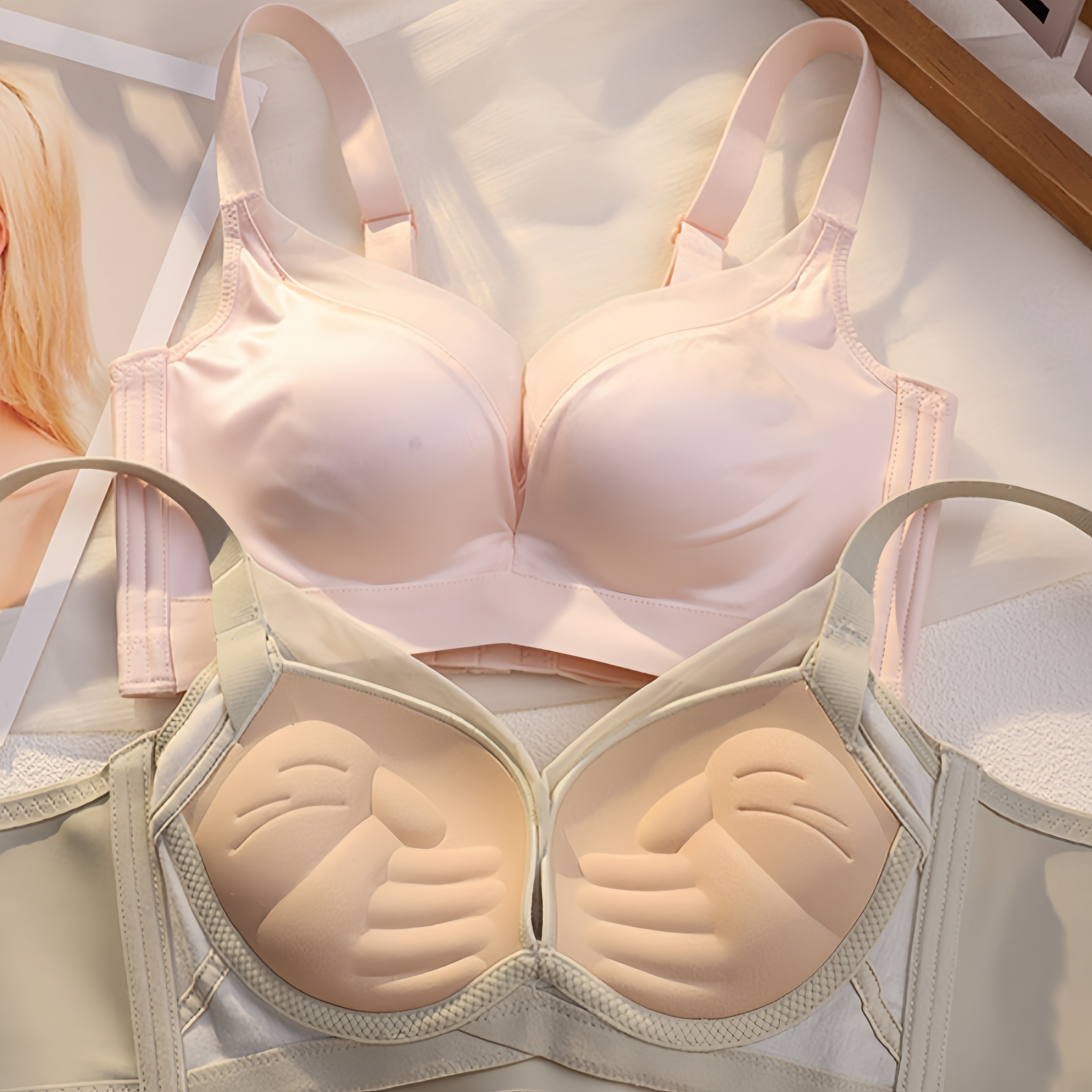 奢华光面无痕内衣女聚拢加厚文胸无钢圈手掌杯收副乳6CM小胸罩A杯