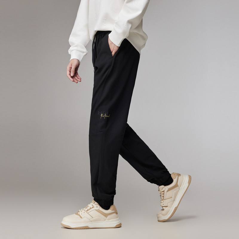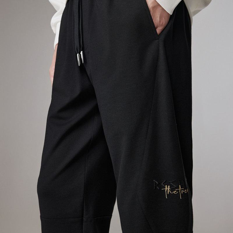【字母绣花】卡宾宽松抗皱束脚卫裤男春季新款宽松休闲针织裤