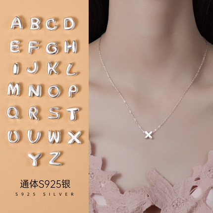 吊坠单坠名字字母项链女款925纯银小单独坠子不含链银饰挂坠配件