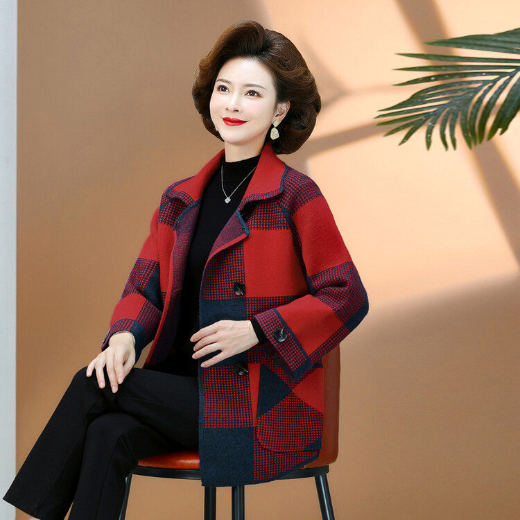 中老年女装新款羊毛开衫老年人秋季冬上衣洋气妈妈春装外套50岁