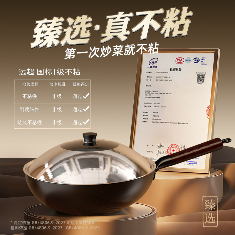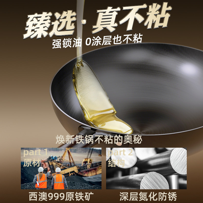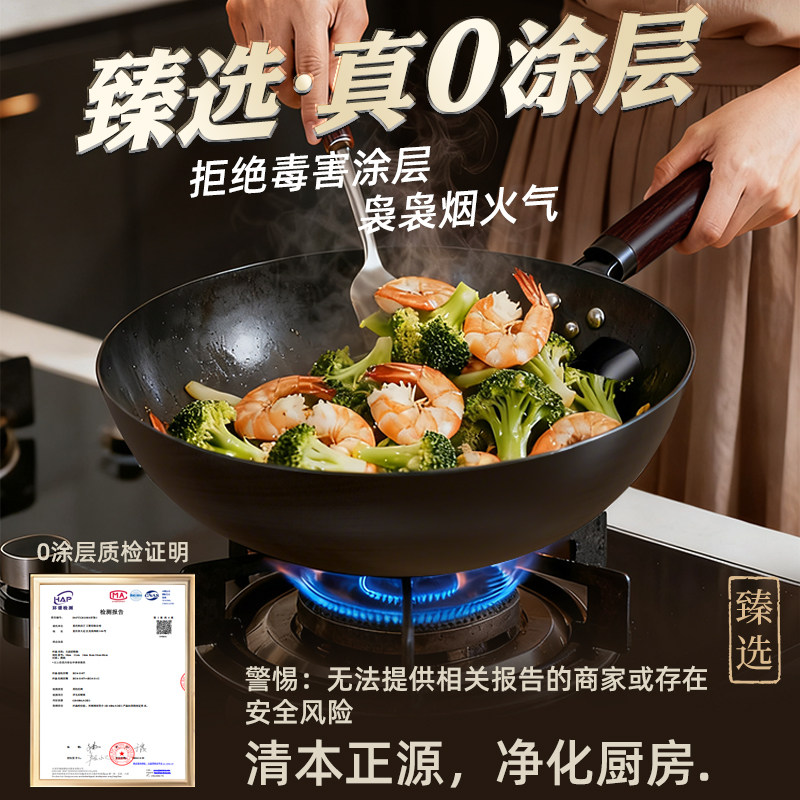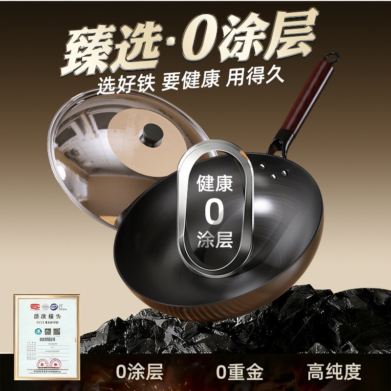 老式铁锅炒菜锅家用无涂层不粘锅熟铁适用燃气灶专用炒锅传统精铁