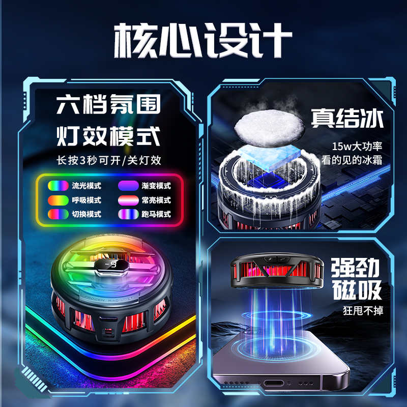 手机散热器磁吸半导体制冷降温神器适用小米黑鲨苹果一加冰封静音散热背夹结冰平板ipad直播电竞专用2025新款