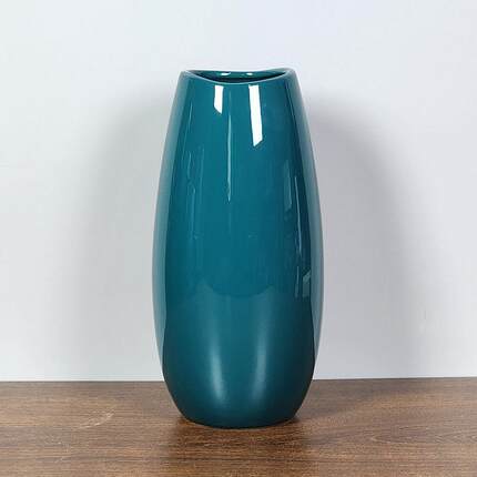 绿色鹅蛋鱼嘴口陶瓷花瓶家居客厅餐桌电视柜摆件内外釉面可装水