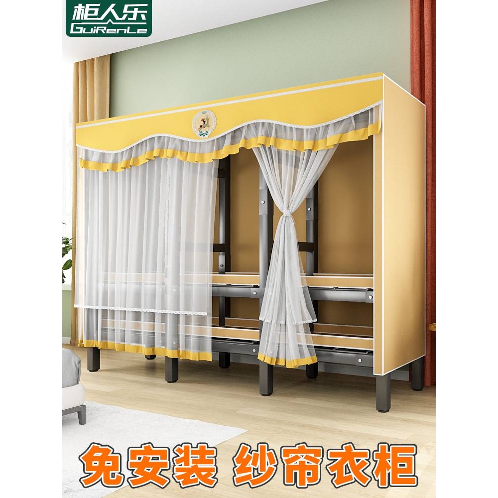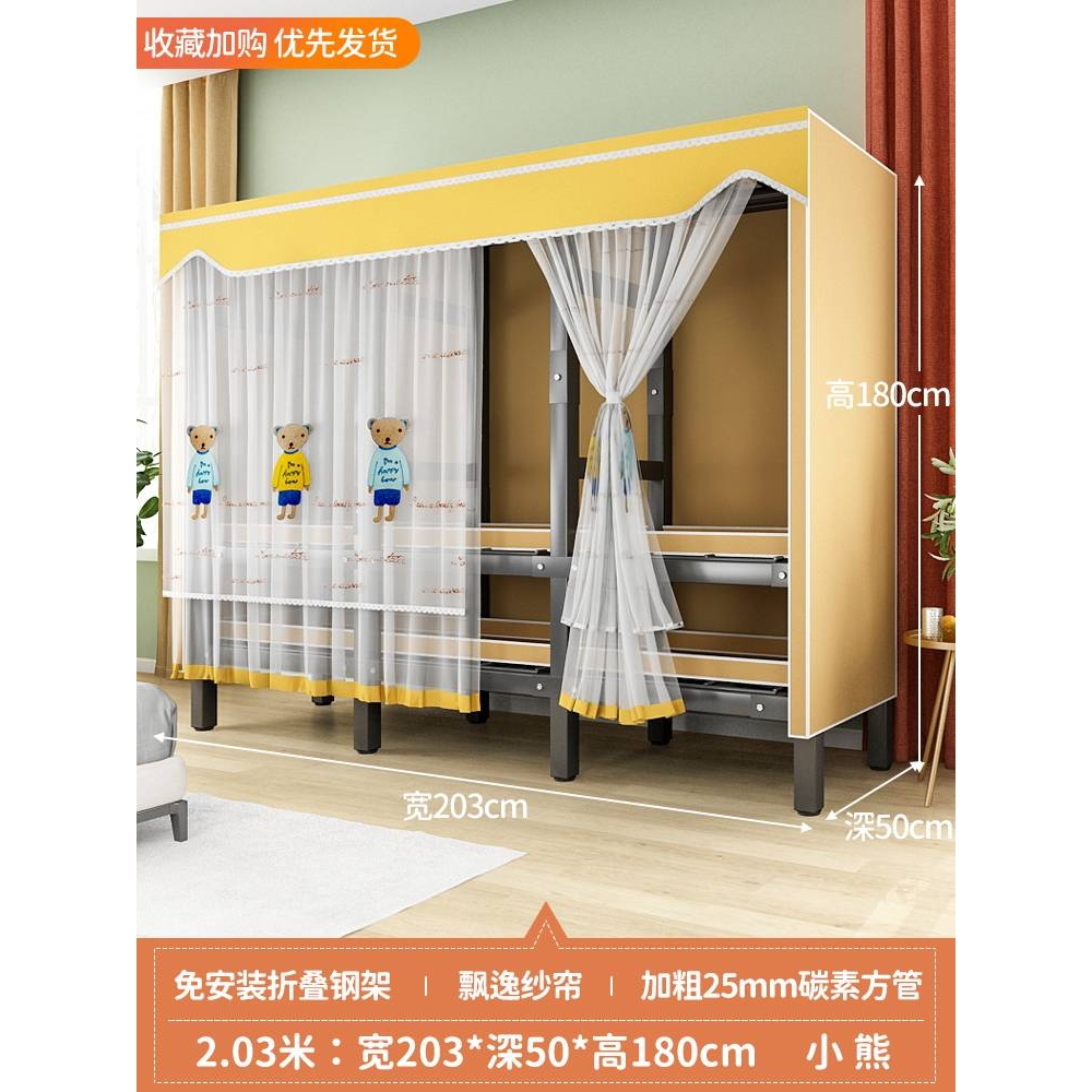 ft免安装折叠钢架结构简易布衣柜钢管加粗家用卧室结实全挂式衣橱