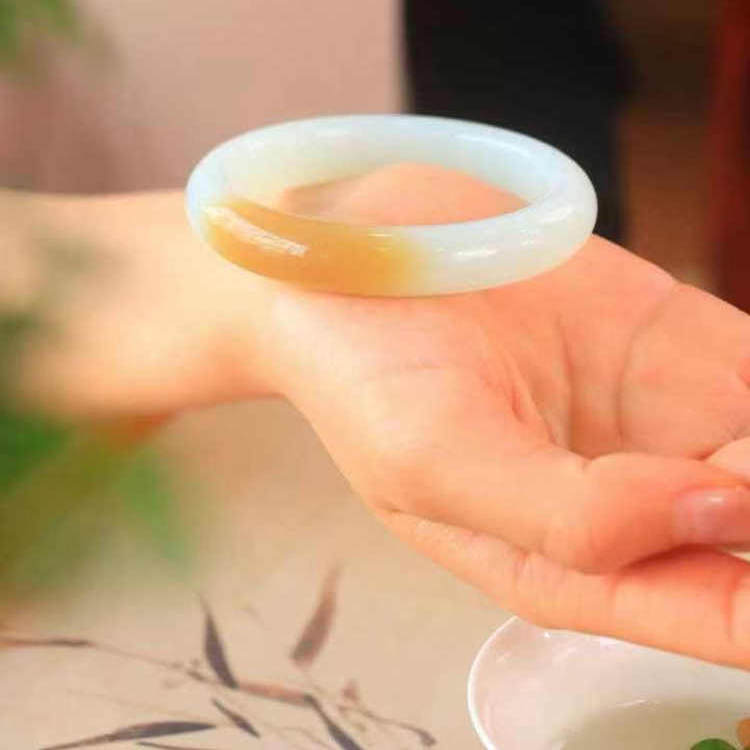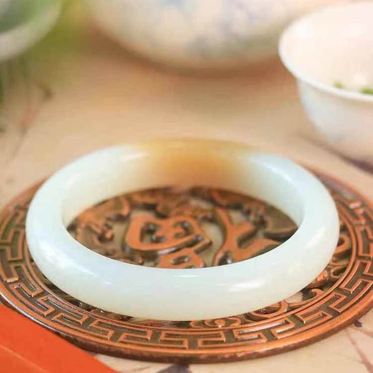 天然正圈新疆和田玉糖白玉手镯女且末糖玉镯子圆条玉石玉器老坑料