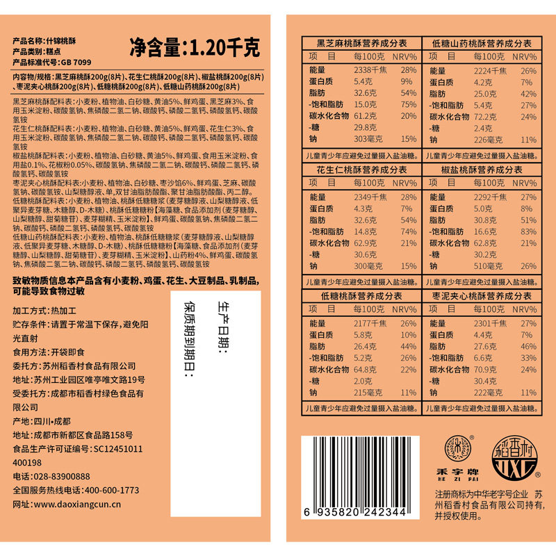 稻香村混合口味桃酥黑芝麻花生枣泥糖醇山药整箱礼盒零食送礼糕点