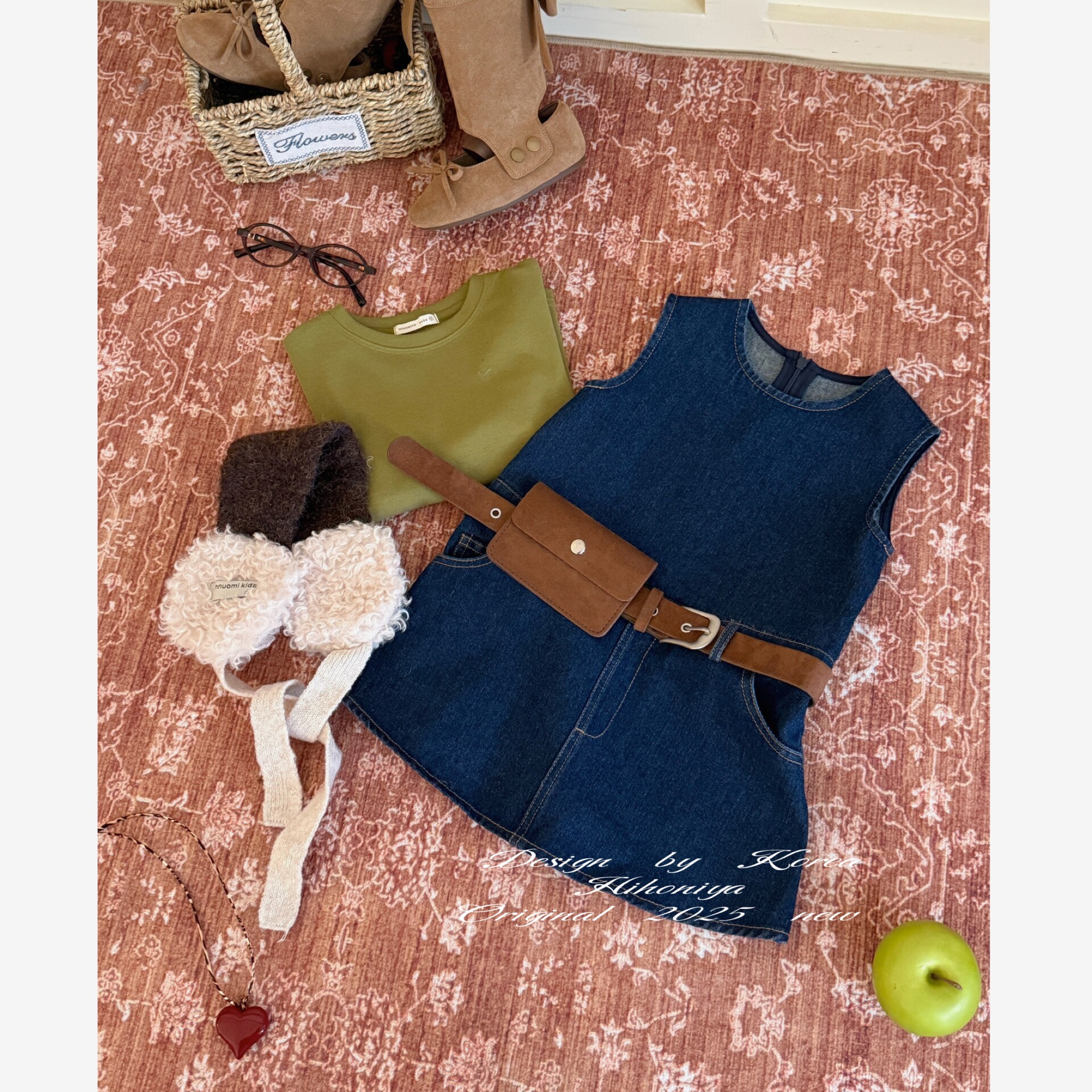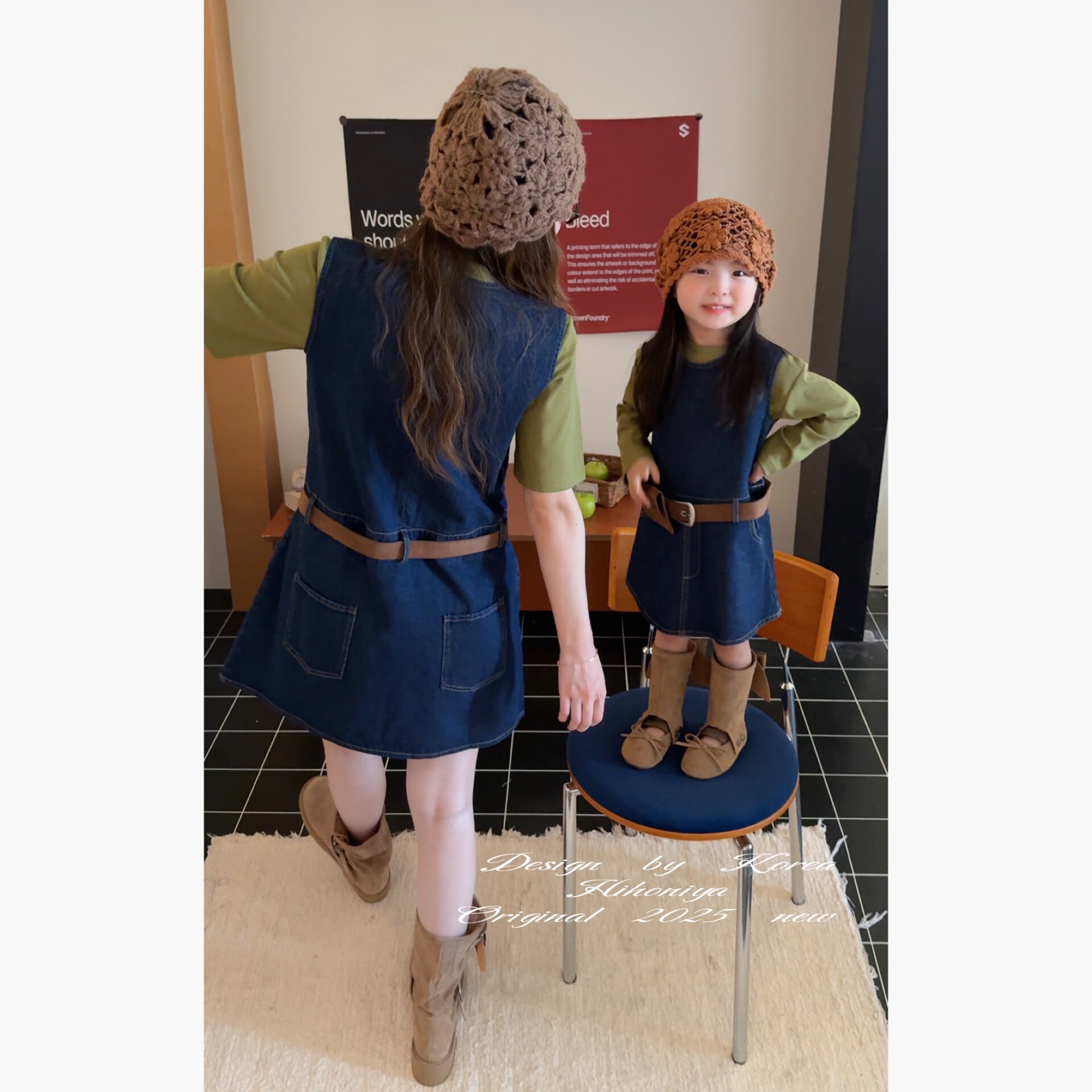 Spring韩国童装2025年秋季新款亲子文艺复古无袖背心裙女童连衣裙