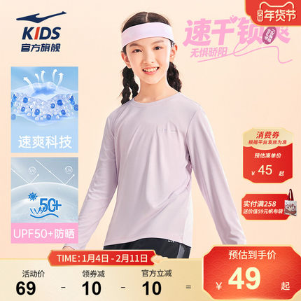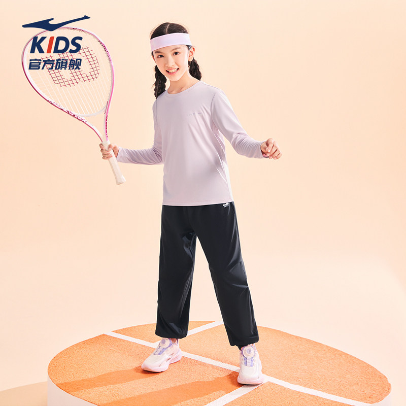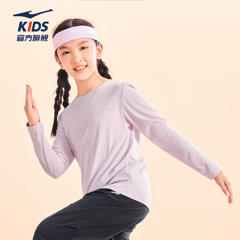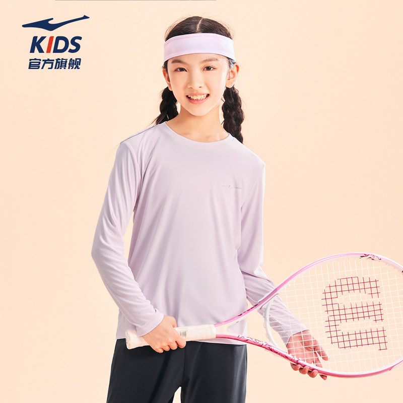 鸿星尔克童装儿童长袖T恤防紫外线女童速干圆领防晒上衣男童打底