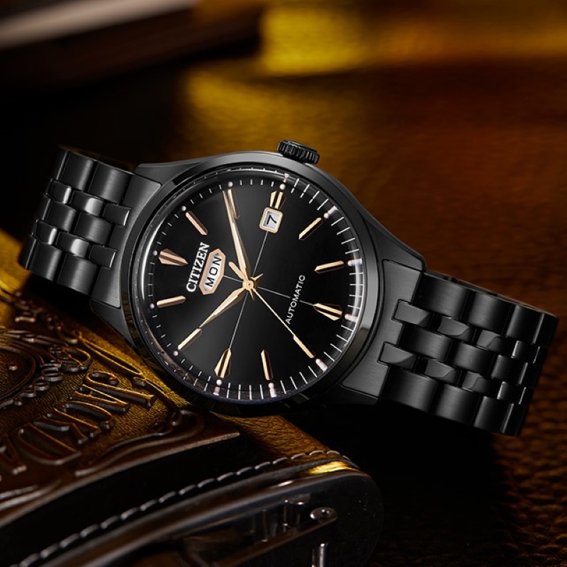 西铁城官方不锈钢覆BIP间金色表带防水机械优雅手表男NH8390-71LB