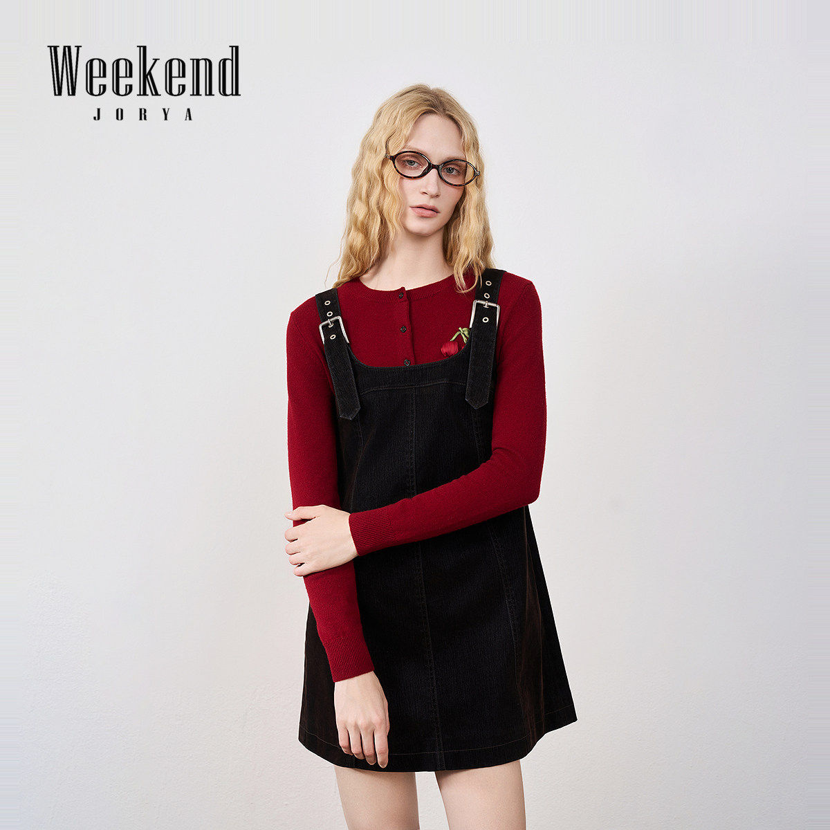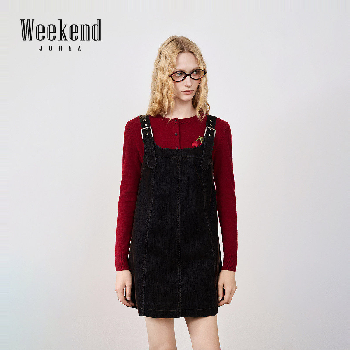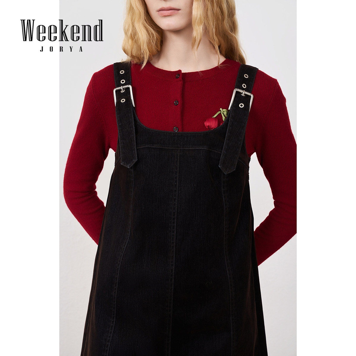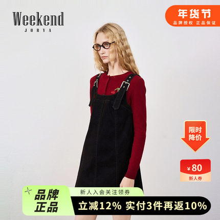 卓雅周末2025冬季新款复古风学院减龄A字牛仔背带连衣裙XRW6L10C