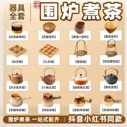 围炉煮茶烤火炉套装器具全套配件工具家用室内烤奶茶罐茶壶电碳炉