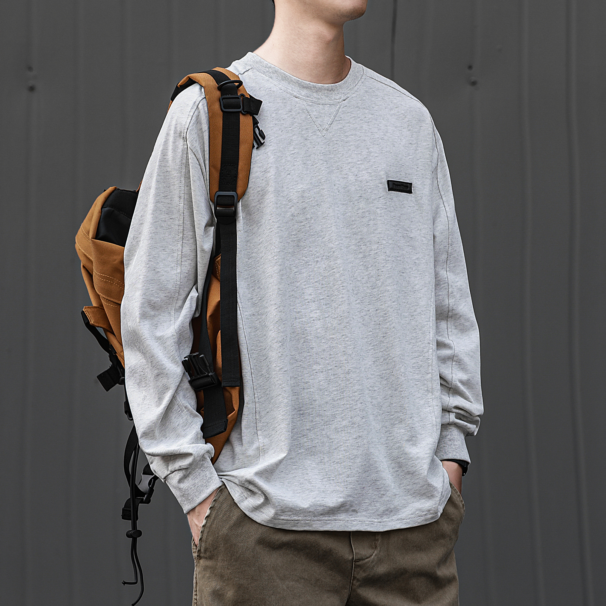 290g嘿马七作日系复古春秋季分割拼接插肩长袖T恤男休闲内搭上衣
