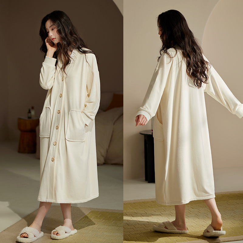 轩靓海岛绒睡袍女冬季加绒珊瑚绒睡裙薄绒浴袍大码睡衣春秋家居服