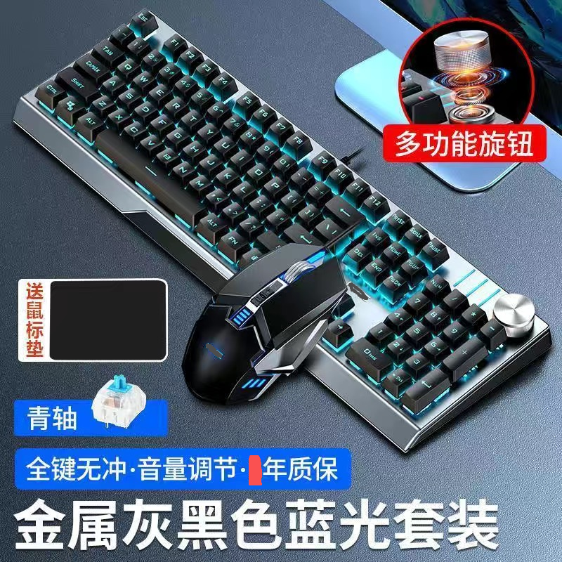 新盟机械键盘鼠标套装青轴有线游戏电竞金属台式机电脑笔记本通用
