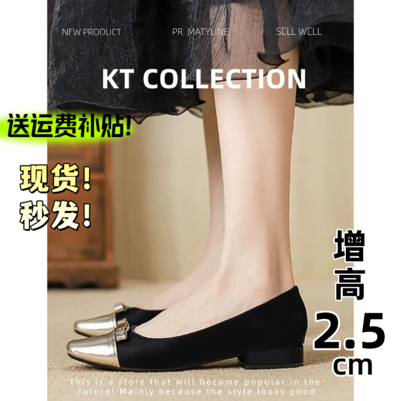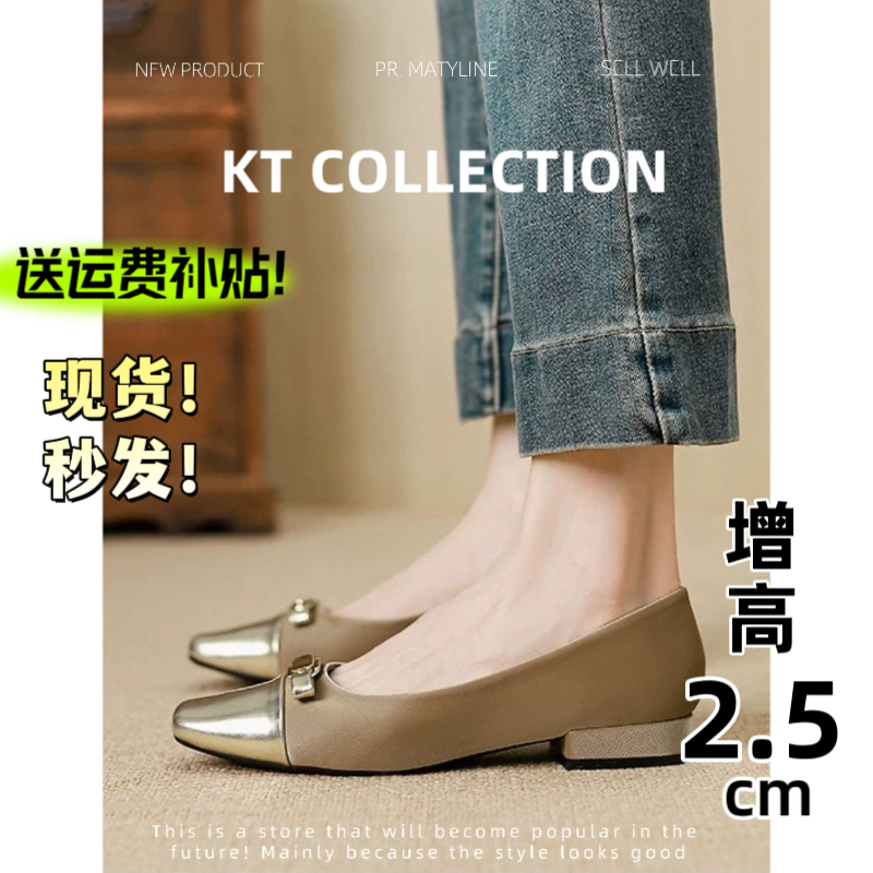 羊皮版!增高2.5cm~法式复古玛丽珍鞋女粗跟浅口单鞋方头小皮