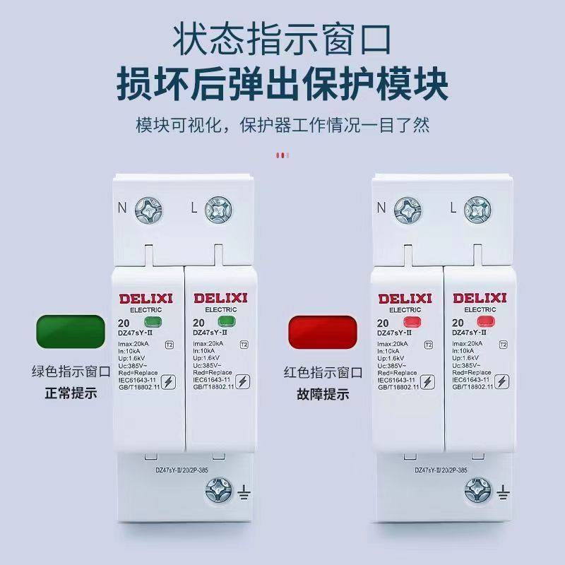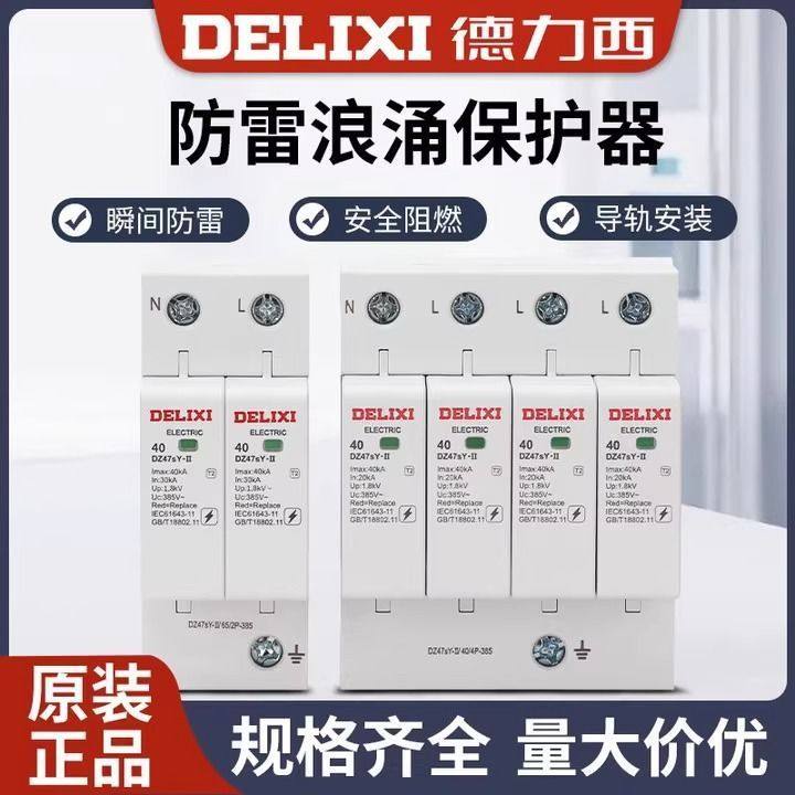 德力西浪涌防雷击保护器家用避雷器开关电涌电源模块220V三相二级