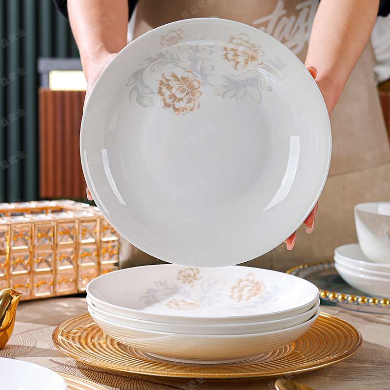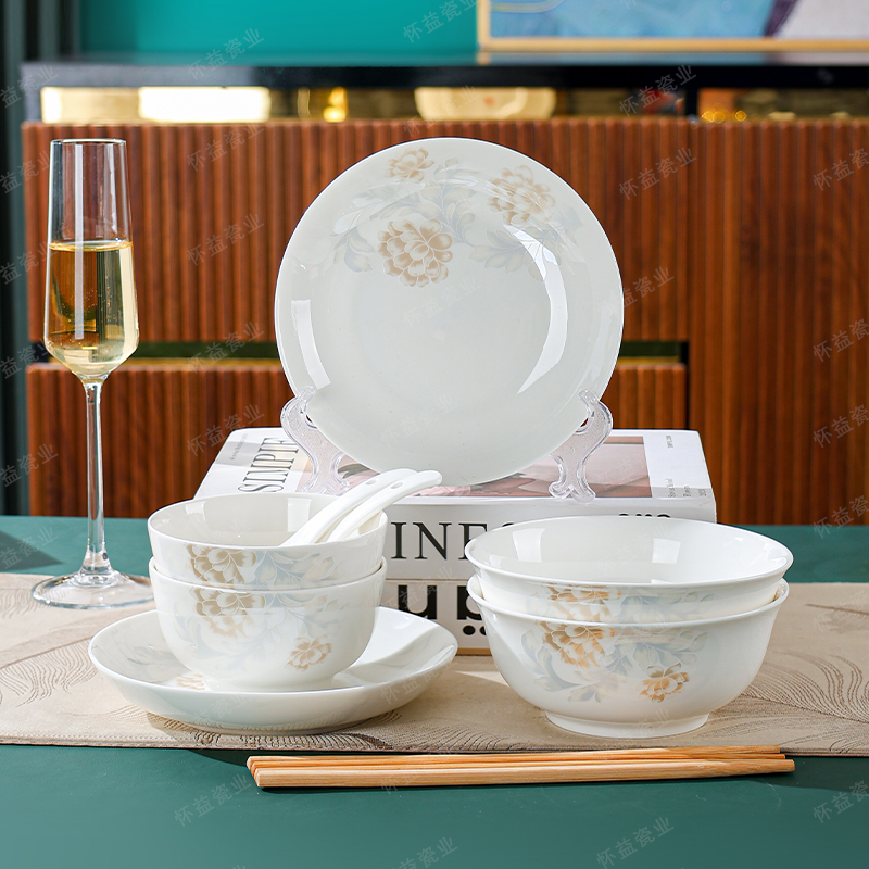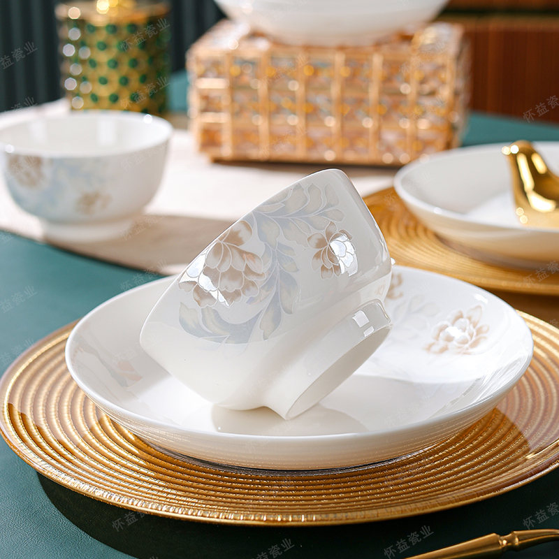 新品新骨瓷餐具家用轻奢陶瓷碗碟高档套装送礼乔迁清雅中式盘子