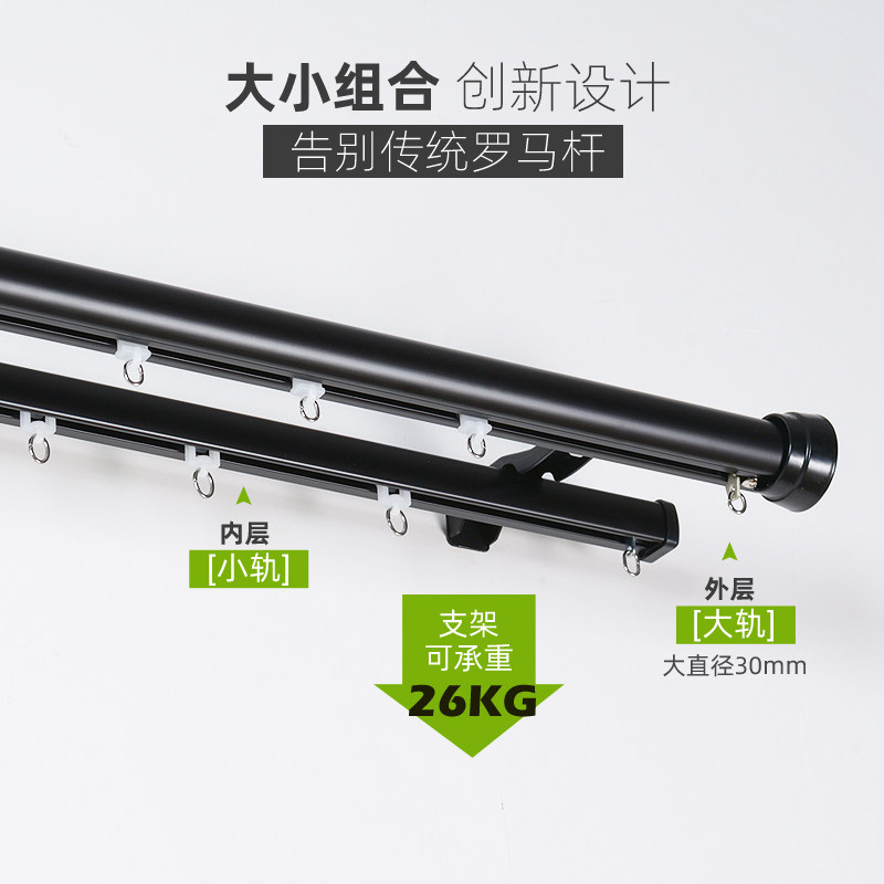 法瑞尔极简窗帘轨道黑白灰窗帘杆侧装迷你单双支架静音滑道罗马杆