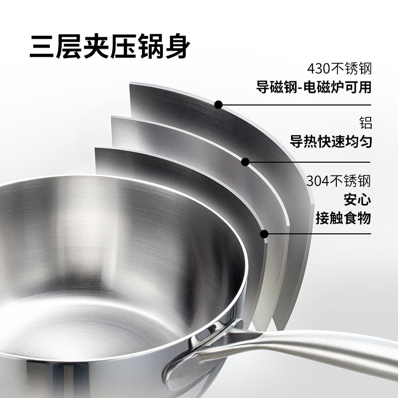 【自营】霜山不锈钢雪平锅无涂层日式小奶锅宝宝辅食家用泡面汤锅