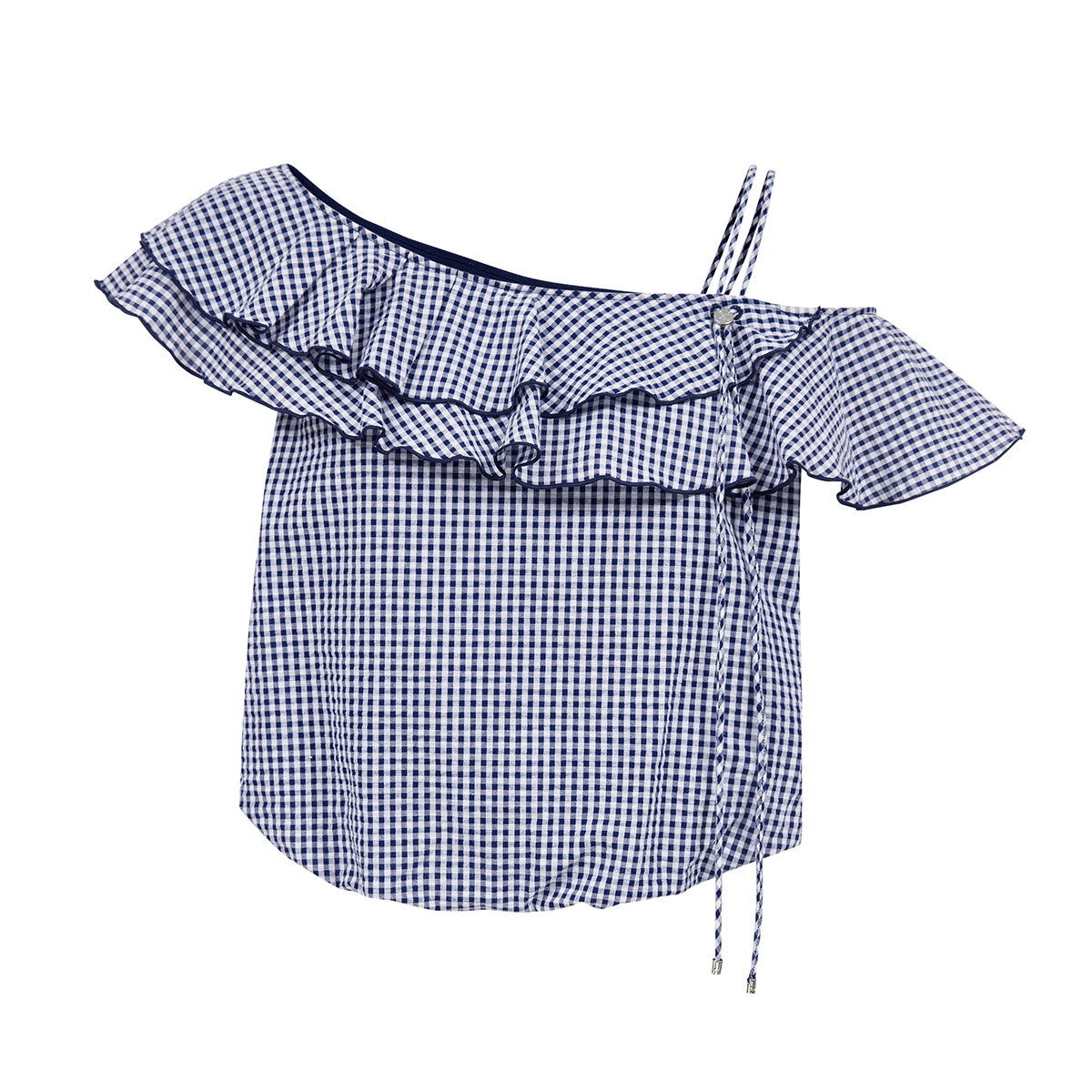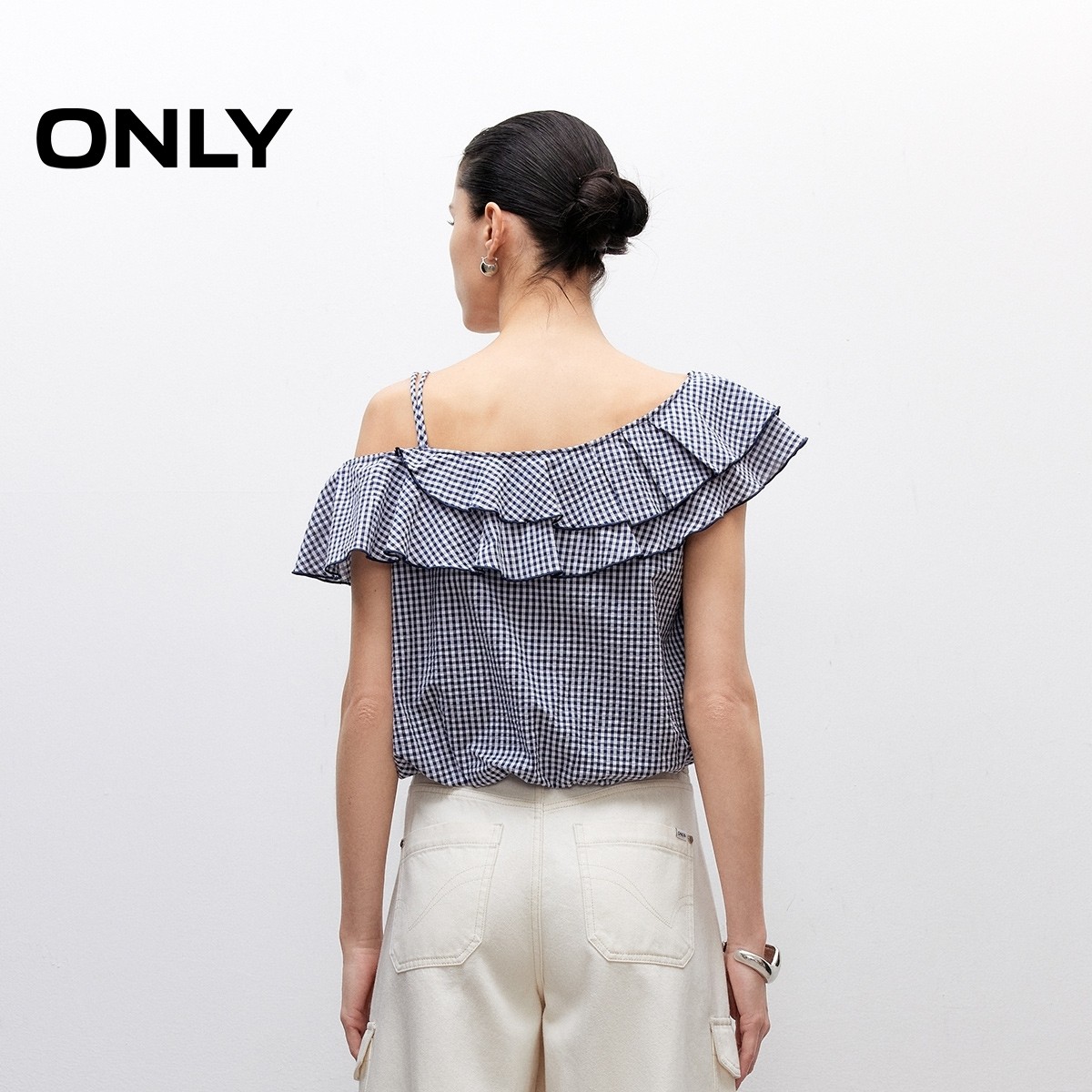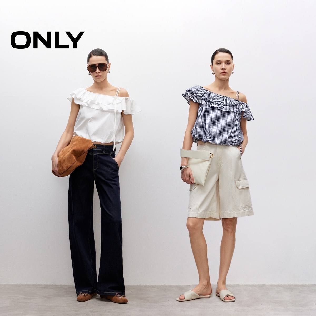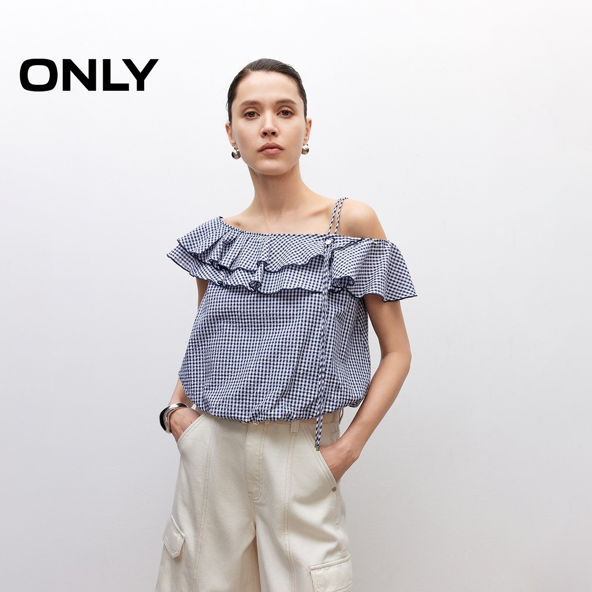 绫致ONLY2025夏季新款气质荷叶边设计短款显瘦雪纺衫女