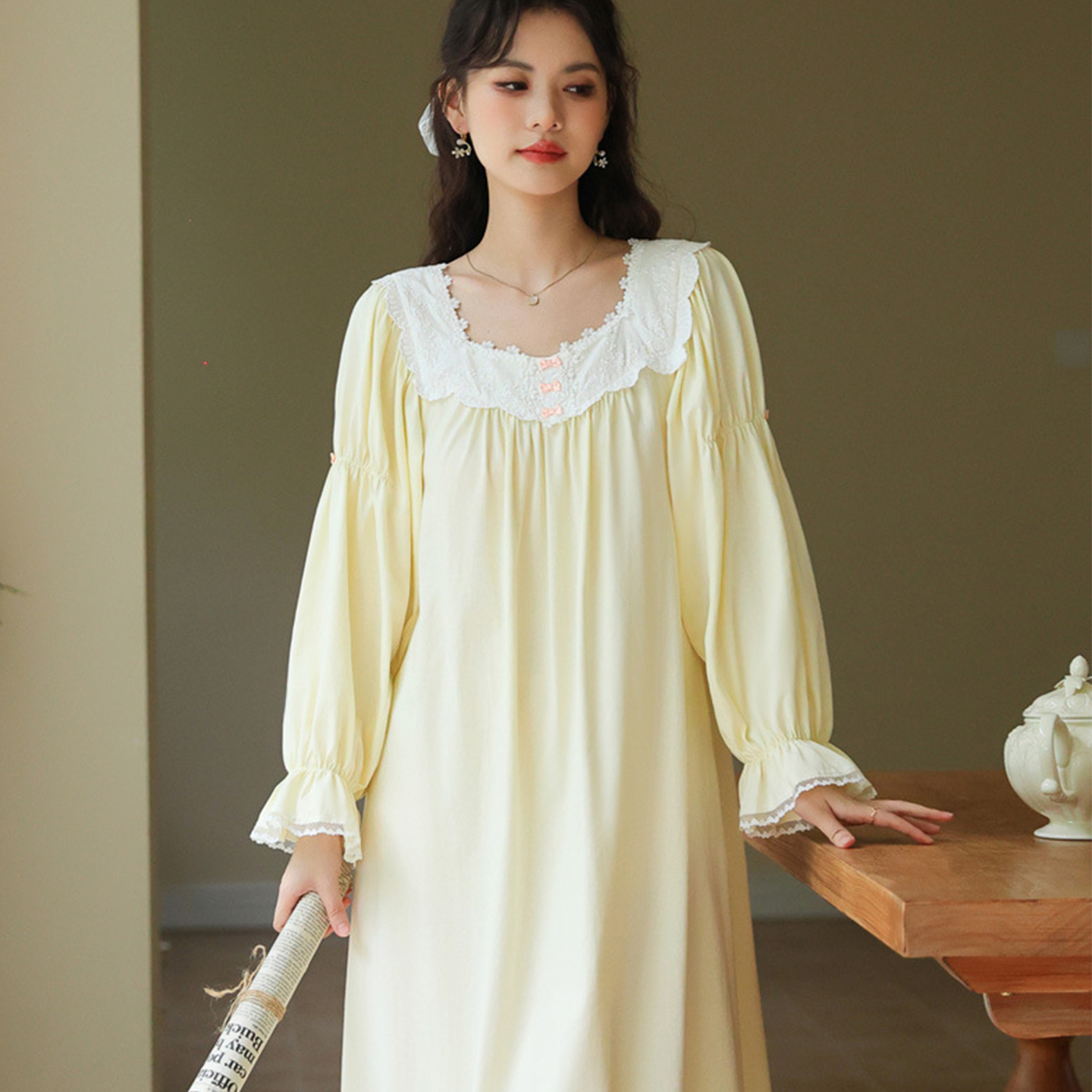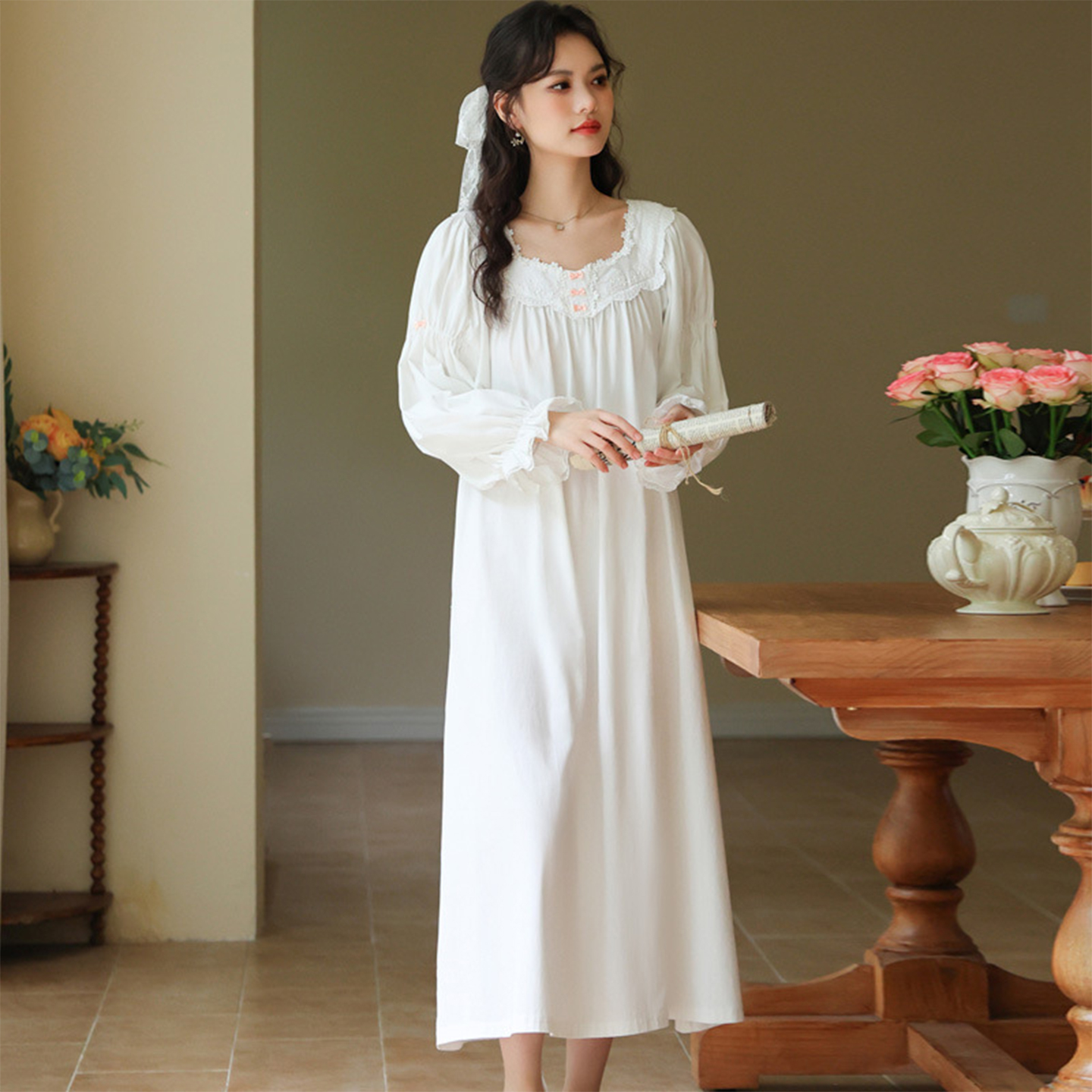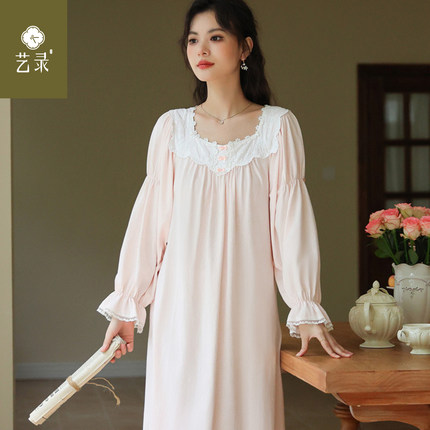 艺录法式长袖睡裙棉秋季长款舒适甜美睡衣柔软宫廷风可外穿家居服