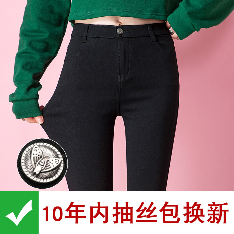 八分打底裤女外穿春秋冬2021新款黑色高腰加绒小脚黑裤九分小个子