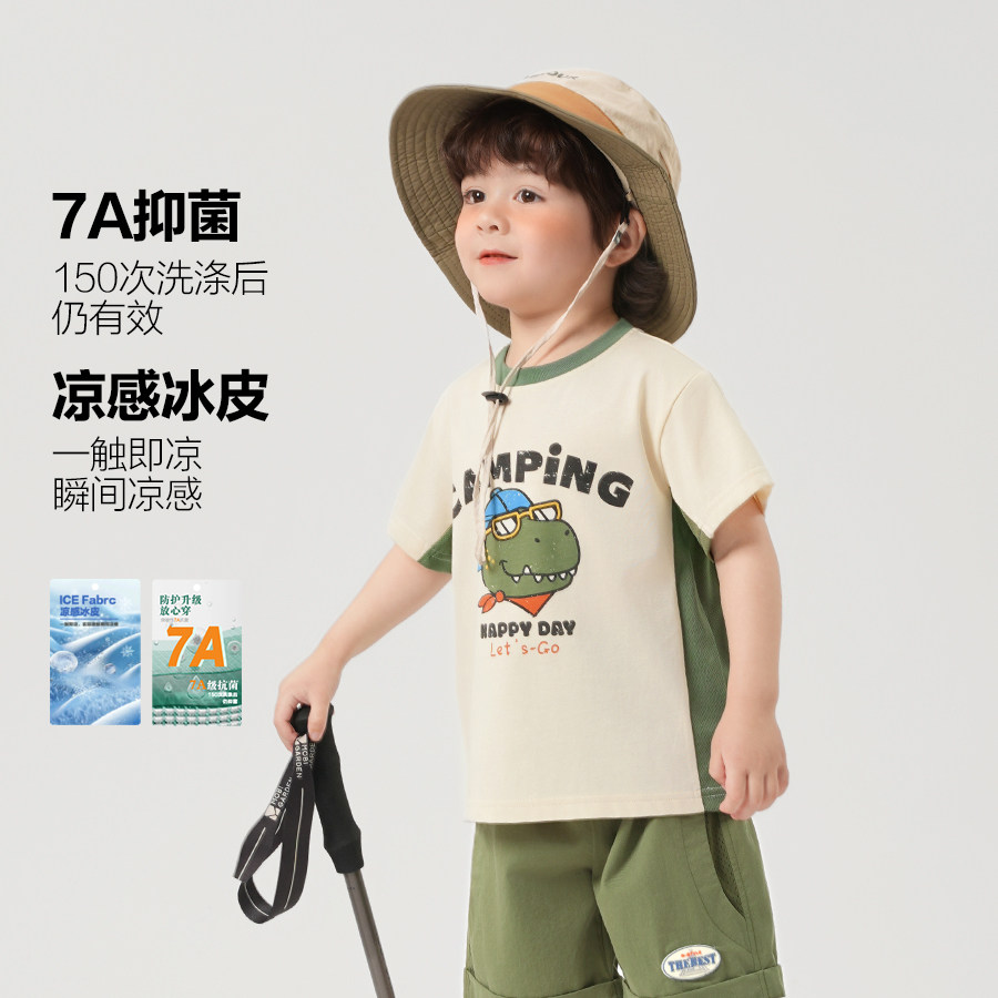 右欧男童女童夏季套装儿童短袖T恤五分裤两件套休闲宽松新款童装