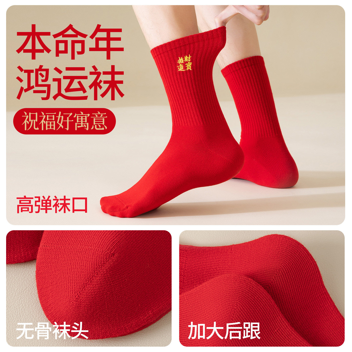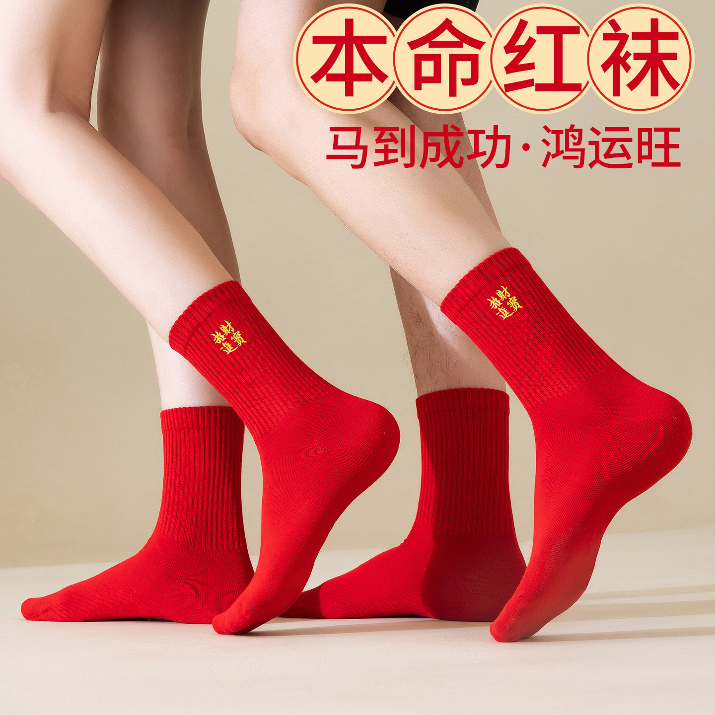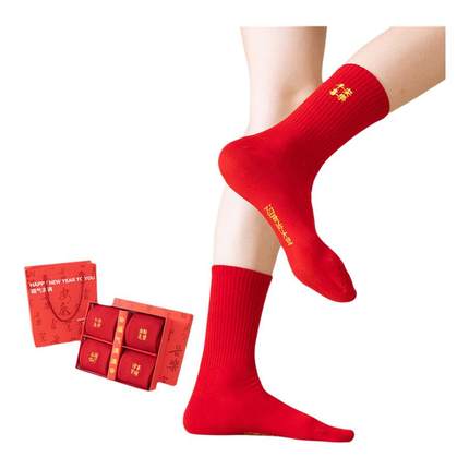 本命年红袜子男女秋冬属马礼盒装