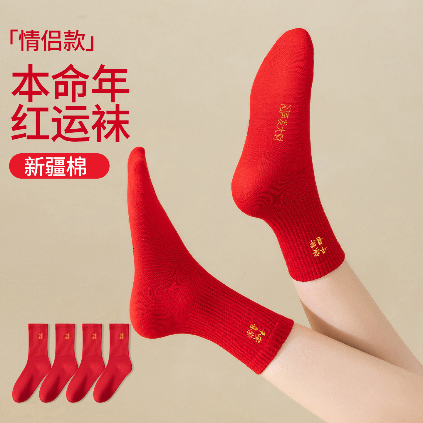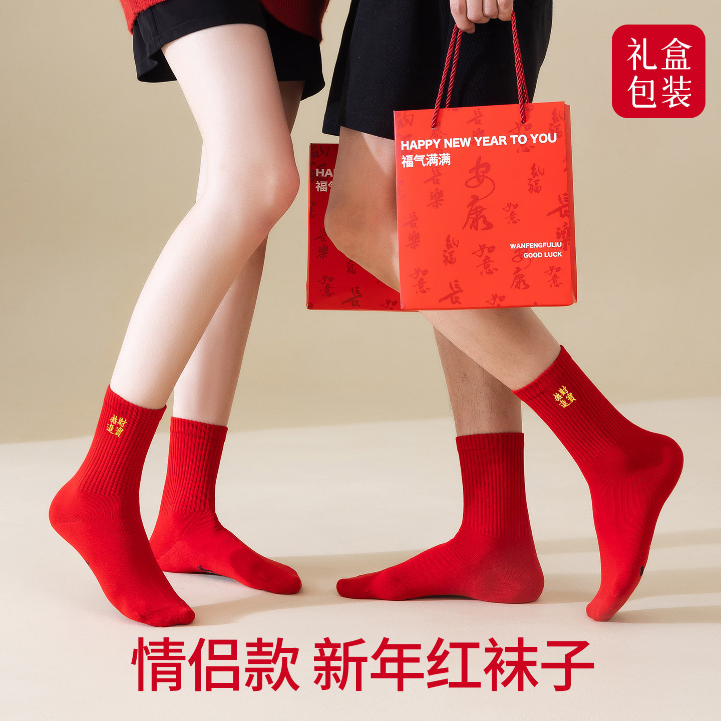 猫人本命年红袜子男女秋冬季情侣款棉袜中筒袜新年属马结婚礼盒装