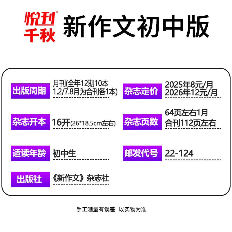 新作文初中版杂志2025年12月【2026全年/半年/季度订阅】初中生语文少年新知期刊本一二三年级文学阅读热点时文满分作文素材过刊