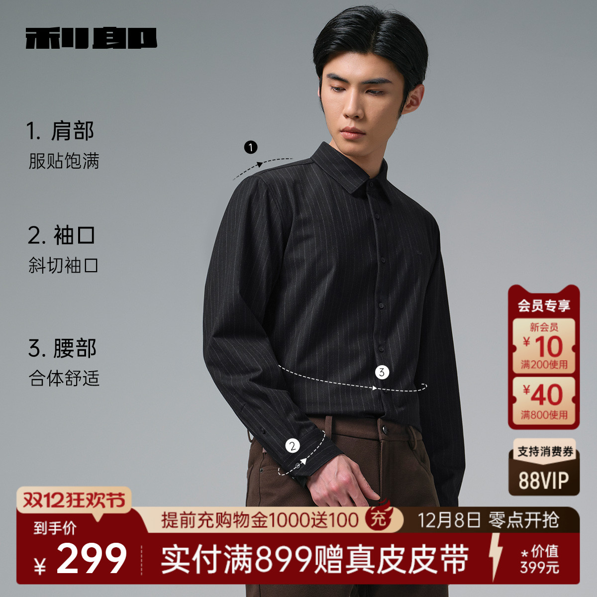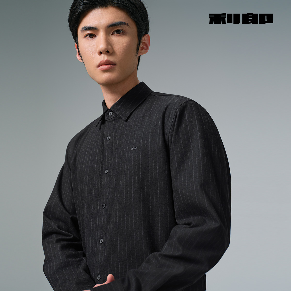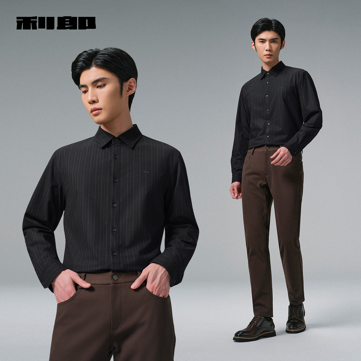 利郎官方加绒保暖条纹商务衬衫