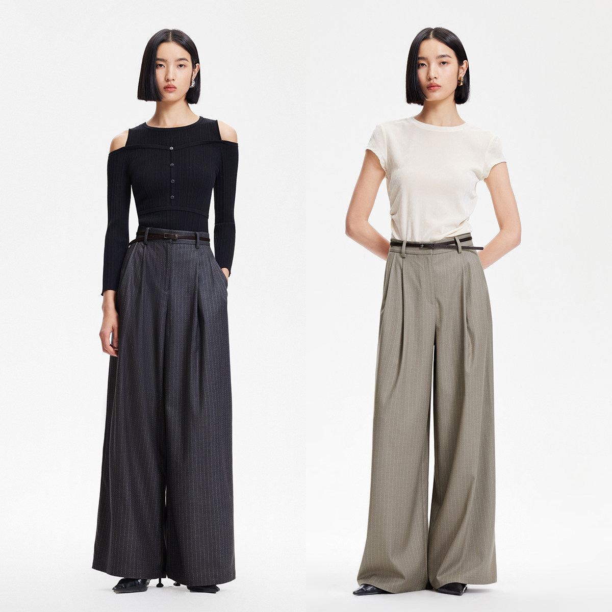 Vero Moda奥莱休闲裤2025秋季新商场同款撞色细条纹阔腿裤子女