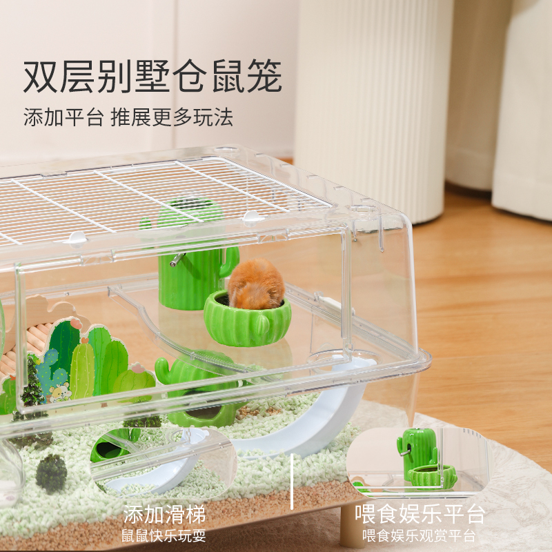 小农山仓鼠笼子金丝熊专用饲养箱亚克力超大豪华全景透明双层别墅