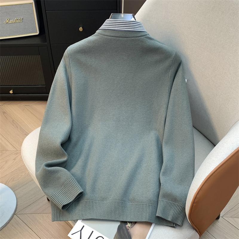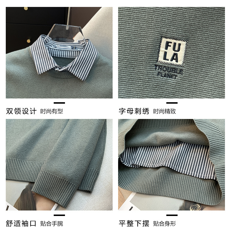 H家、余单!少量现货!灰绿色长袖针织衫25秋季修身假两件毛衣男