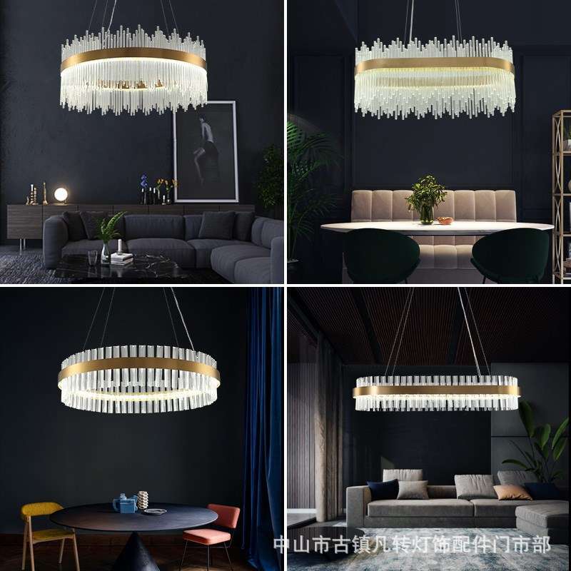 后现代客厅吊灯北欧灯具圆形水晶灯轻奢吊灯简约样板房卧室灯具