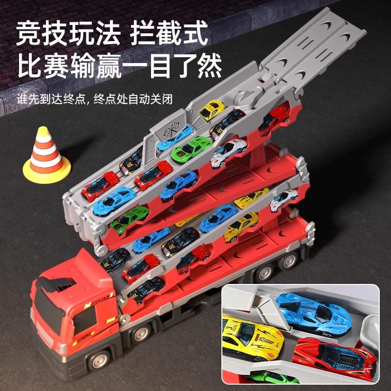 儿童男孩益智玩具折叠轨道弹射变形工程合金小汽车大卡车收纳货柜