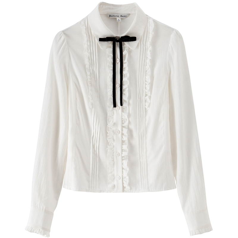 BANANA BABY2025年秋冬新款学院风白衬衫女收腰甜美风琴褶上衣
