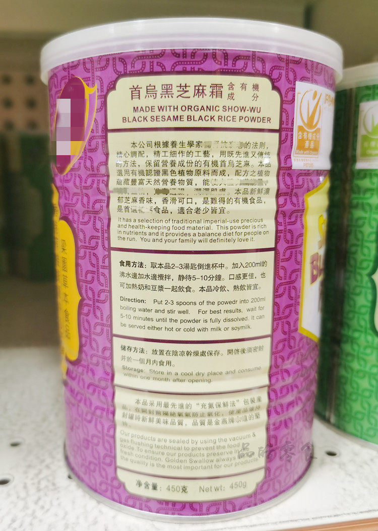 香港品牌金燕首乌黑芝麻霜即溶素食美颜健康健康营养养生冲饮450g