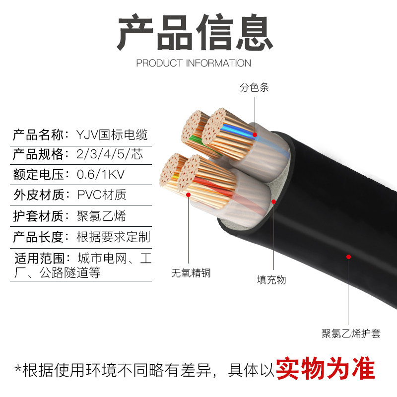 珠江国标纯铜芯电线ZC-YJV 2 3 4 5芯10 16 25 35 50平方工程电缆