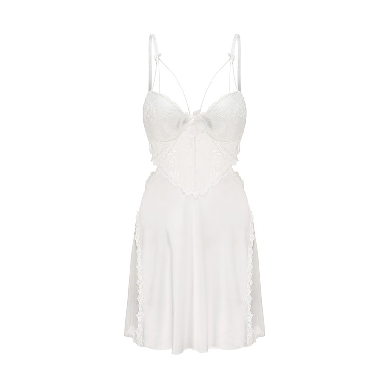 今夕何夕睡裙秋女冰丝火辣薄款高级感纯欲风带胸垫蕾丝性感睡衣