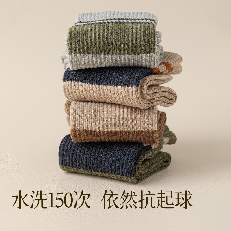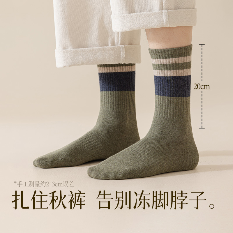 袜子男款中筒春秋款纯棉袜吸汗防臭条纹白黑色男士长筒秋冬季长袜