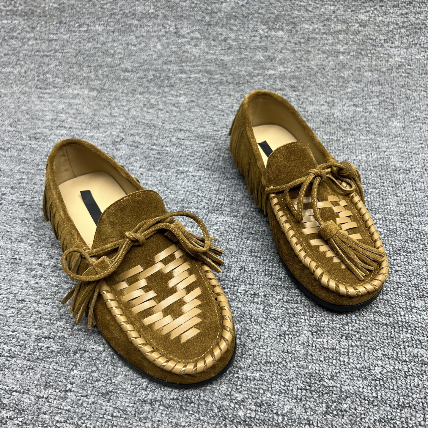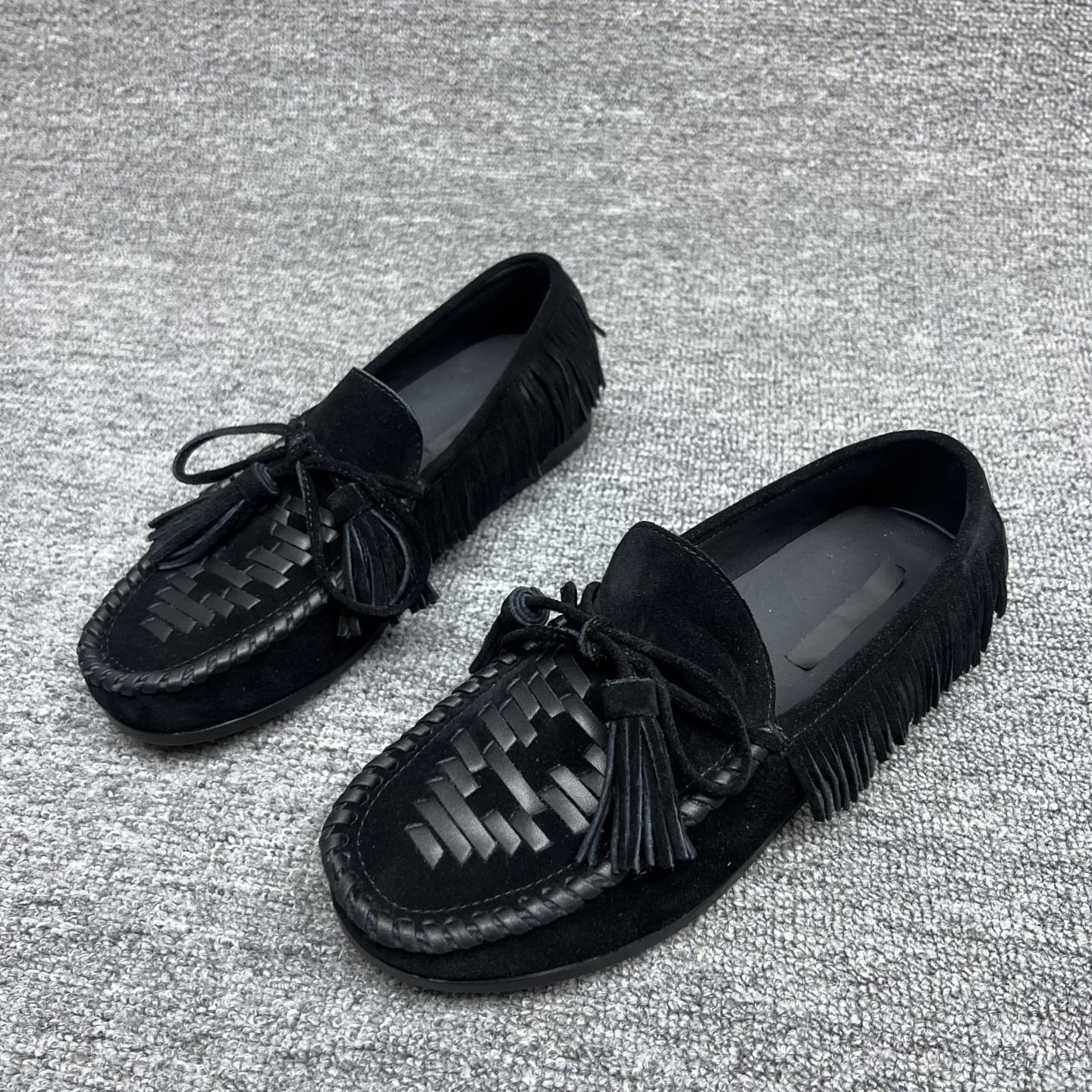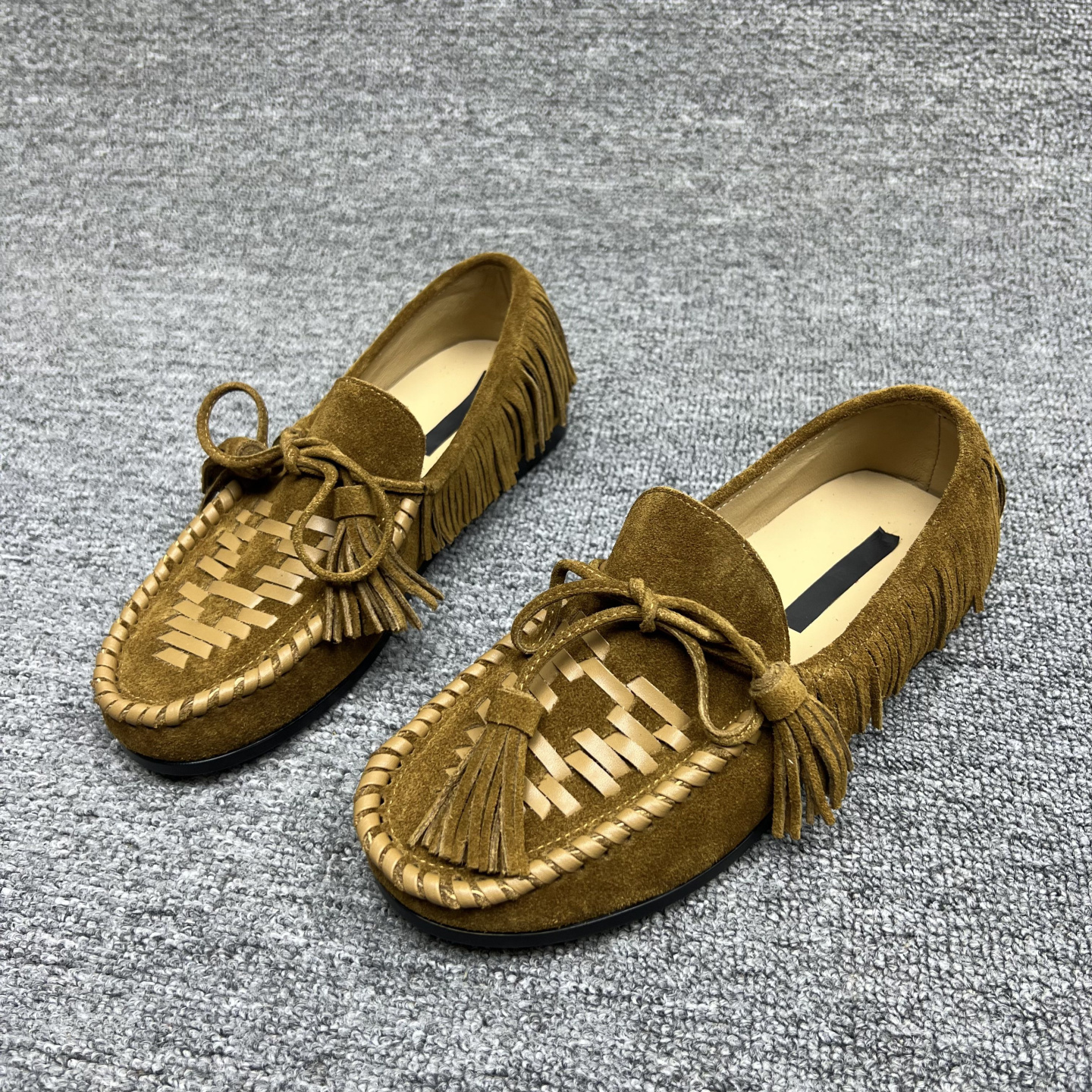 欧洲站2025秋季新款欧货真皮女鞋平底系带磨砂牛皮流苏乐福鞋单鞋