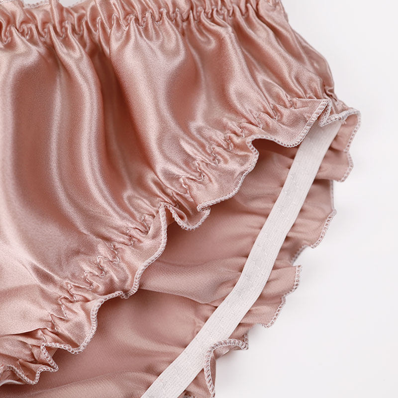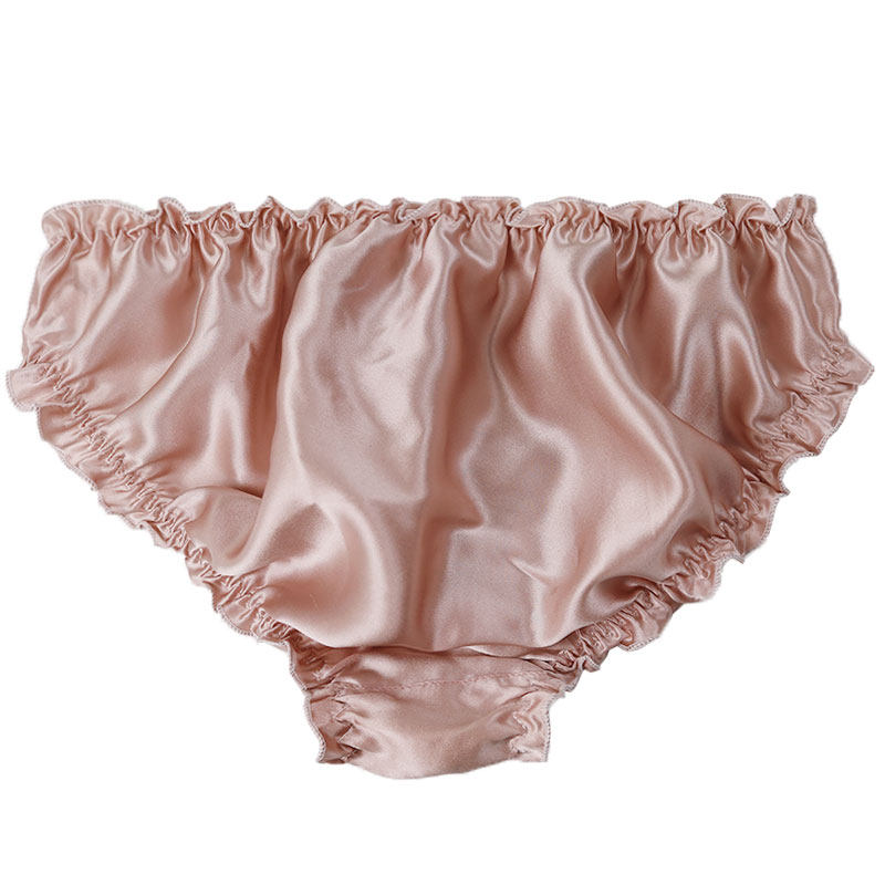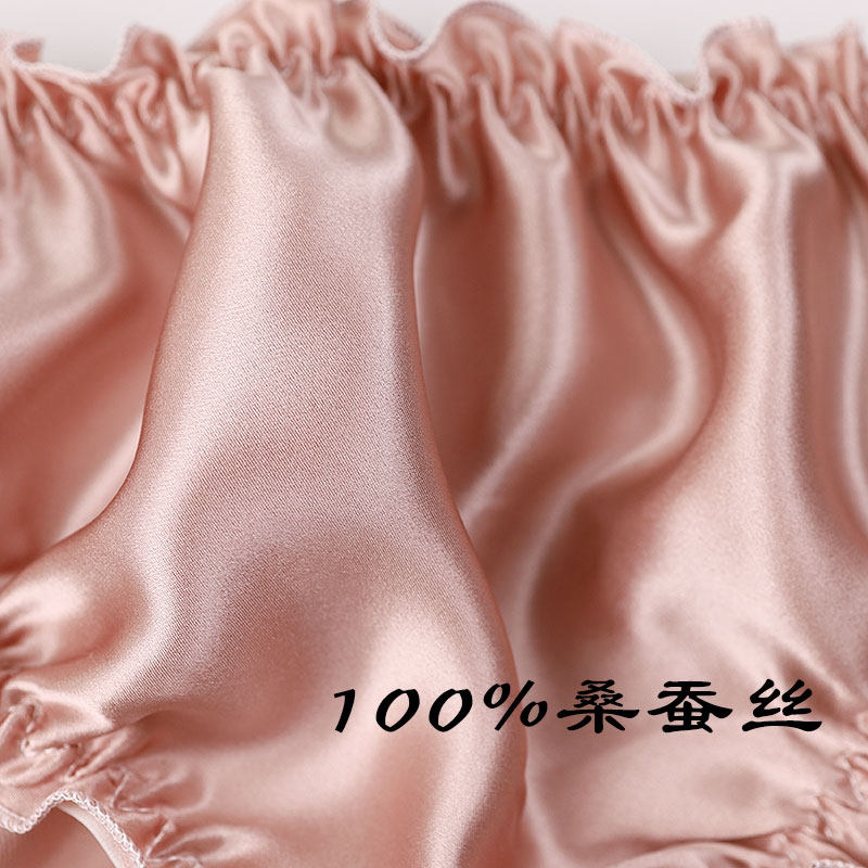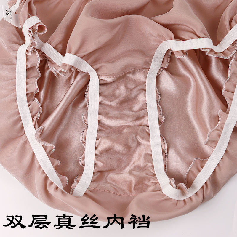 好货真不贵 高档女士真丝内裤荷叶边素绉缎低腰女真丝内裆三角裤