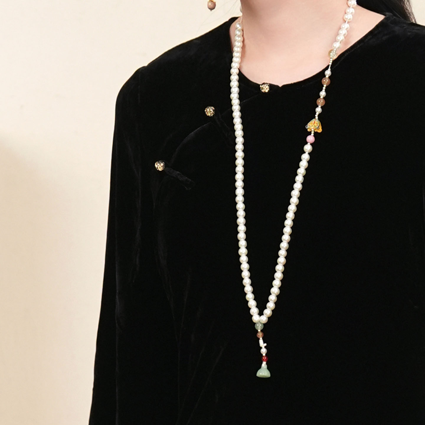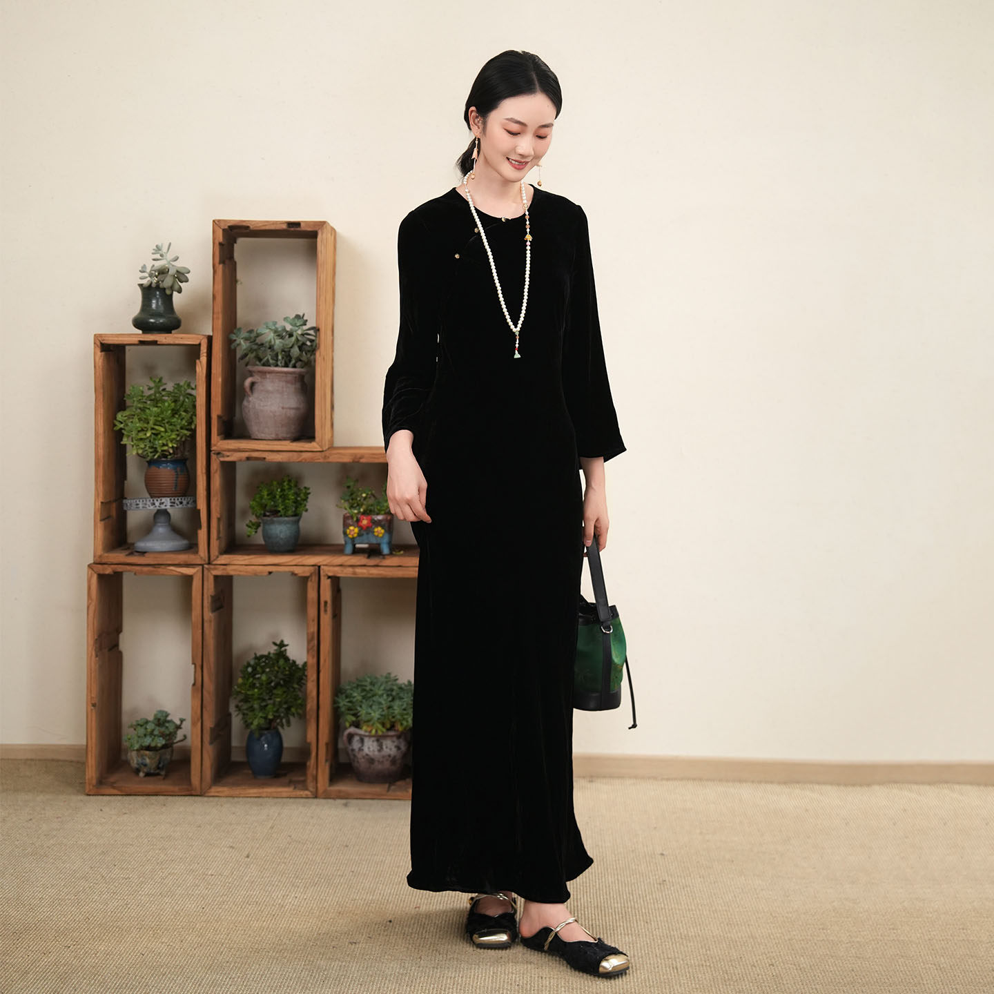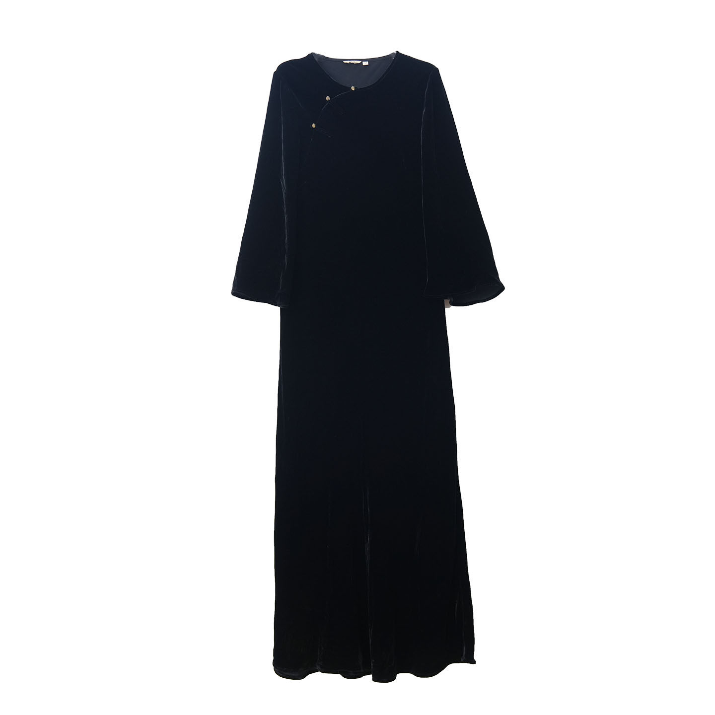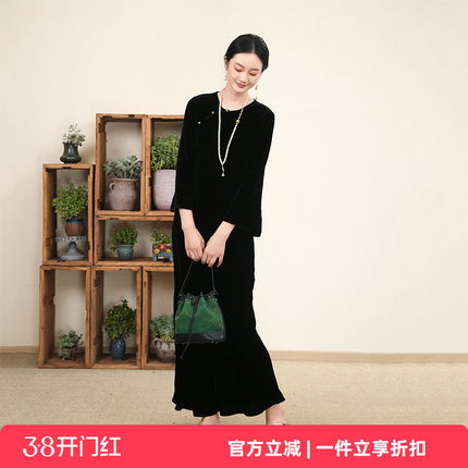 布符新中式 秋季黑丝绒真丝斜裁连衣裙 流行风格女士长裙 MQCLY2