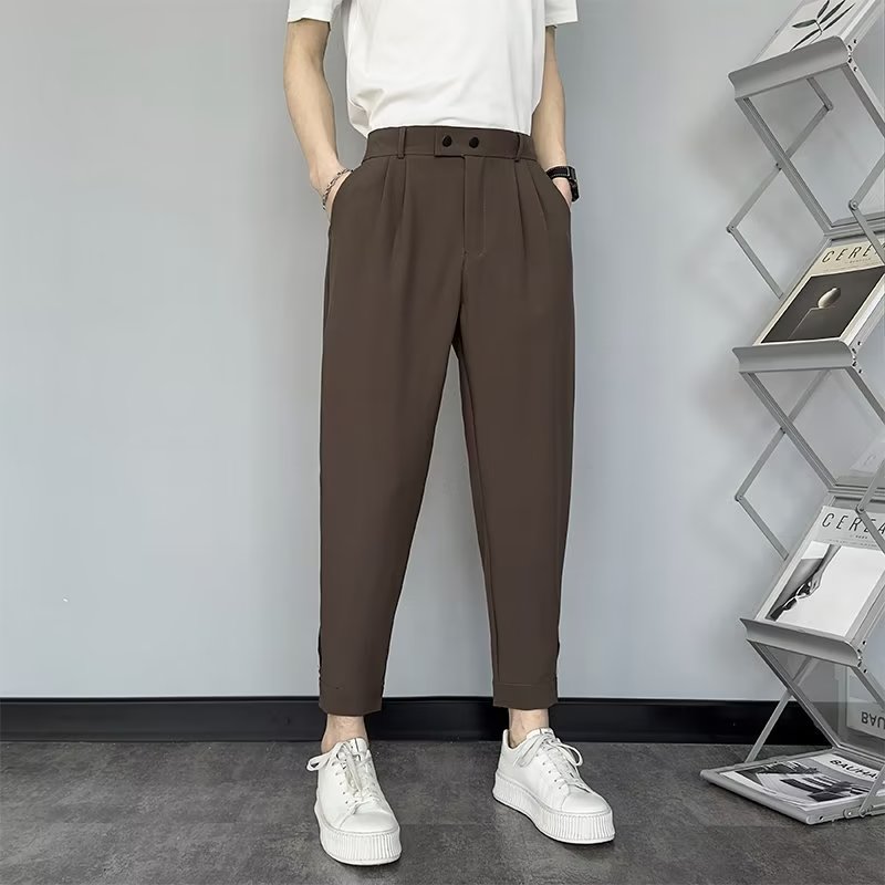 冰丝裤子男夏季薄款宽松阔腿九分裤潮牌拉链束脚裤西裤春秋休闲裤